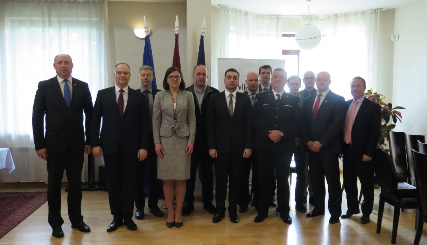 The reporting meeting was attended by Madara Siliņa, Acting Head of the Embassy and the delegation of the State Border Guard - Colonel Juris Martukāns, Deputy Chief of the State Border Guard (Chief of the Central Board), and Colonel Māris Domiņš, Chief of the International Cooperation and Protocol Division of the Central Board of the State Border Guard; Immigration Liaison Officers accredited in France, Greece and Sweden; Consuls of the Consular Departments of the Embassies of Lithuania and Estonia as well as representatives of the Patrol Police Department, the Border Police and Migration Department of the Ministry of the Interior of the Republic of Georgia.
