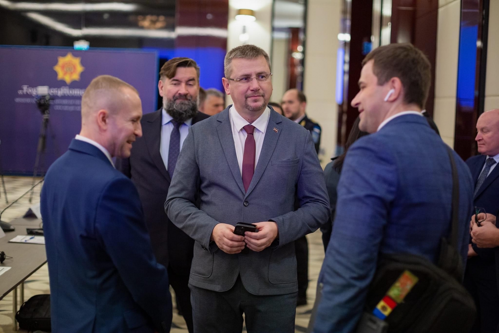 On December 14, 2022, General Guntis Pujāts participated in the reporting meeting of the State Border Guard Liaison Officer in Moldova, where the Liaison Officer presented the results of his activities and up-to-date information. As part of the event, the Chief of the State Border Guard presented awards – the State Border Guard medals for contribution to the development of the State Border Guard, to the Head of Border Police of the Republic of Moldova, R. Vasiloi, and to the Head of the Special Tasks Unit of Border Police of the Republic of Moldova, A. Teut.