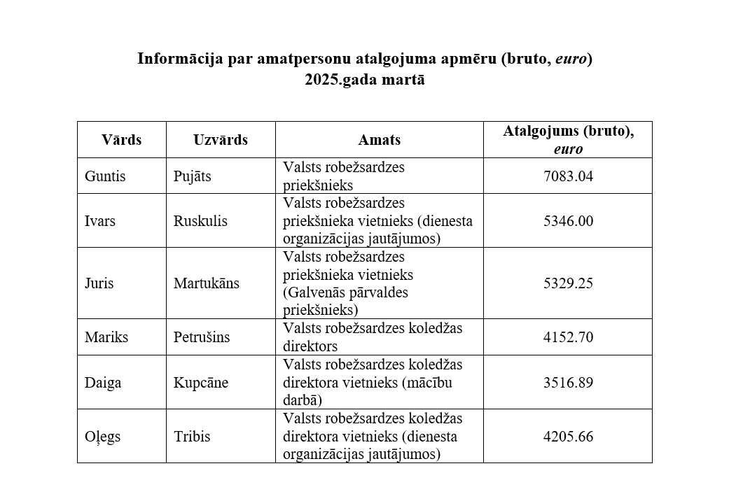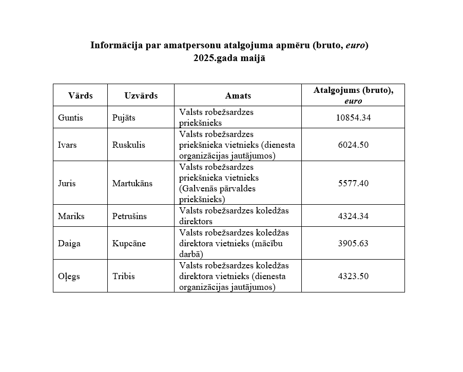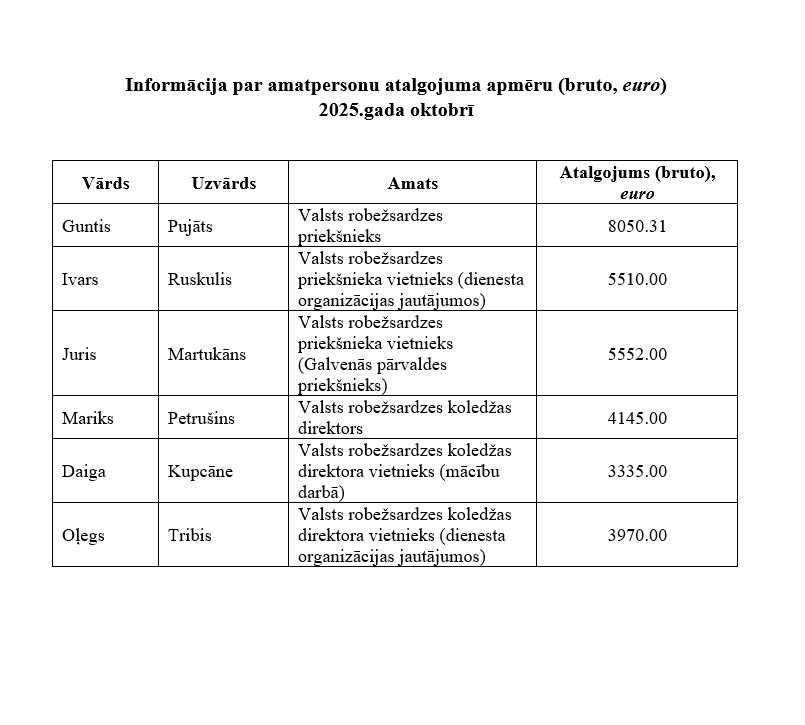 Informācija par Valsts robežsardzes ārvalstu komandējumu izdevumiem