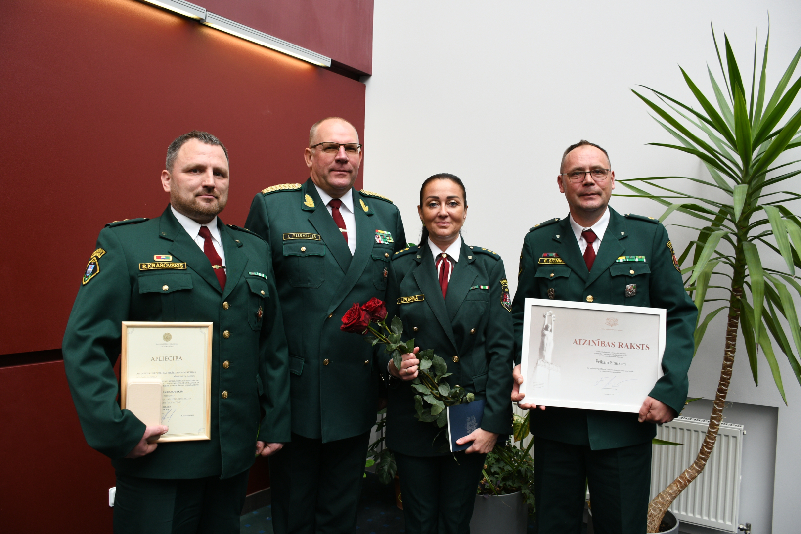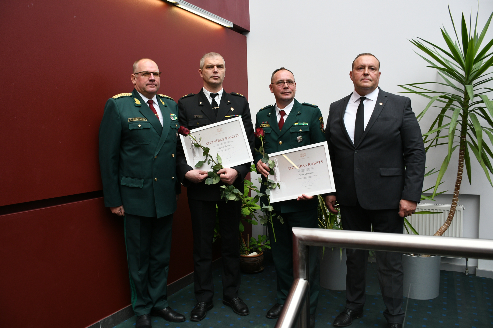 Pasākumā 12 robežsargi saņēma tādus apbalvojumus kā Iekšlietu ministrijas Goda zīme, Ministru kabineta Atzinības raksts, Ministru prezidenta Pateicības raksts un speciālās dienesta pakāpes pirms termiņa.