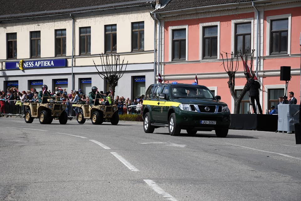 Trešdien, 4. maijā robežsargi piedalījās svētkiem veltītajā militāro vienību un tehnikas parādē, kā arī militārās tehnikas, ekipējuma izstādē un paraugdemonstrējumos Saldū.