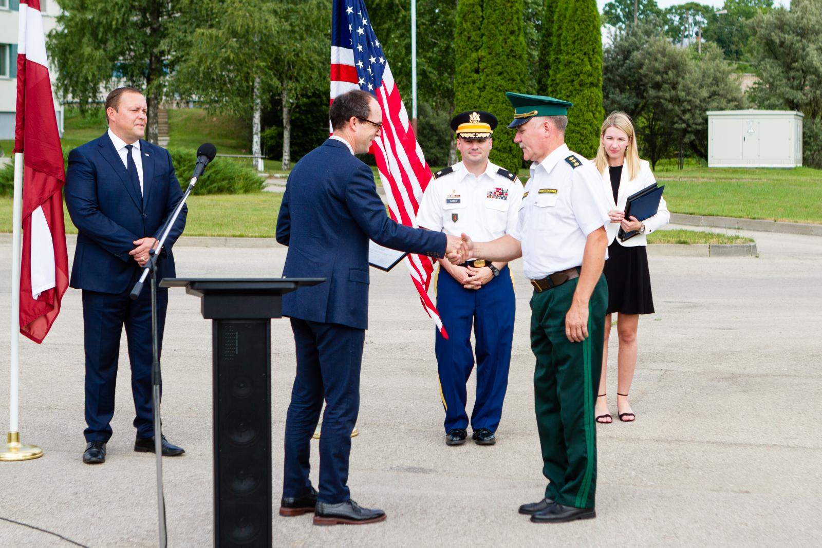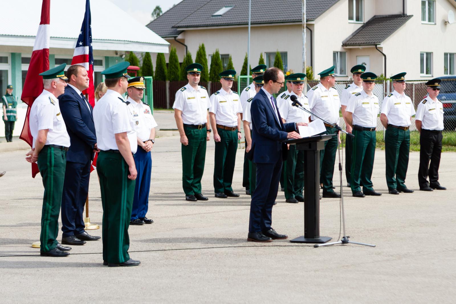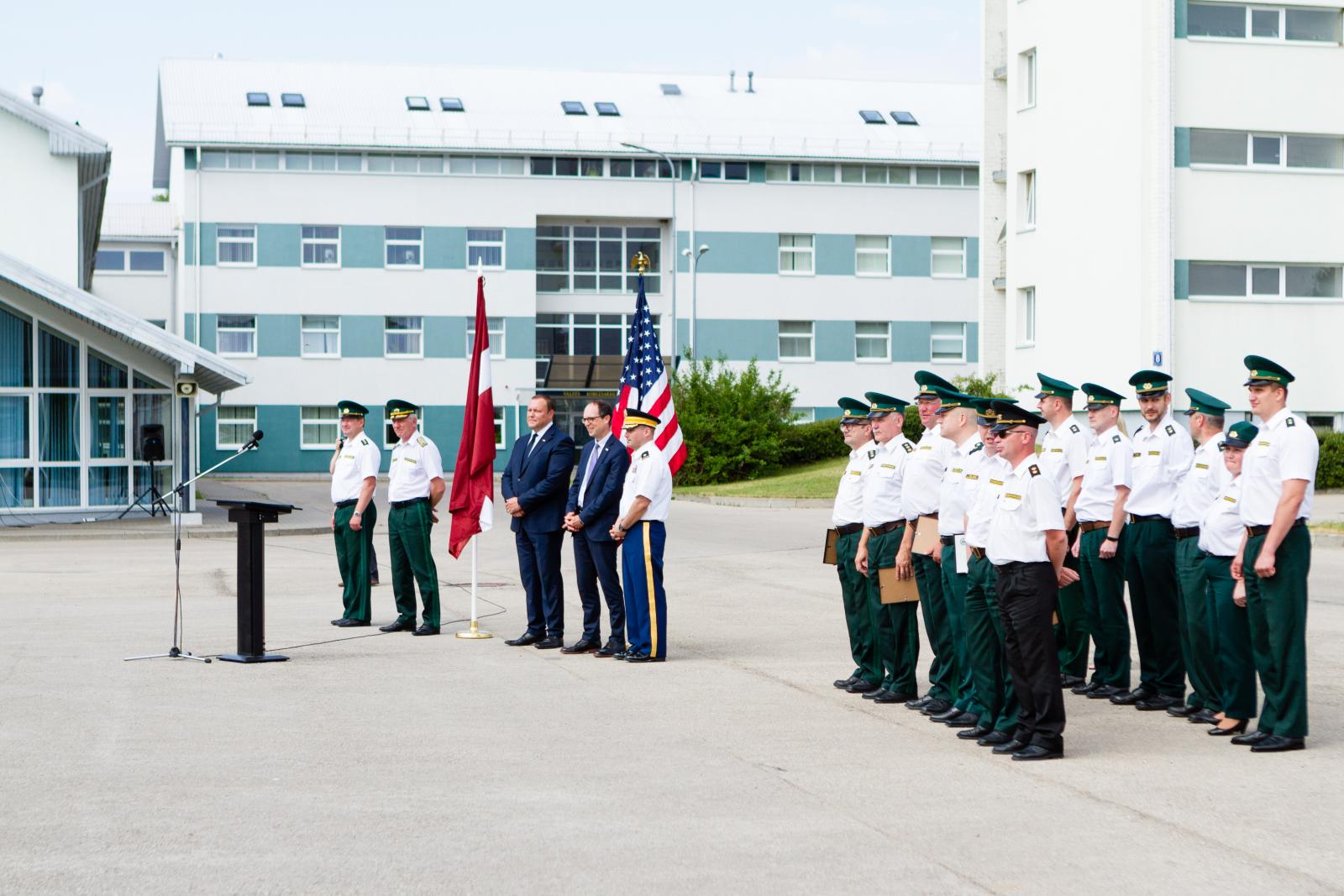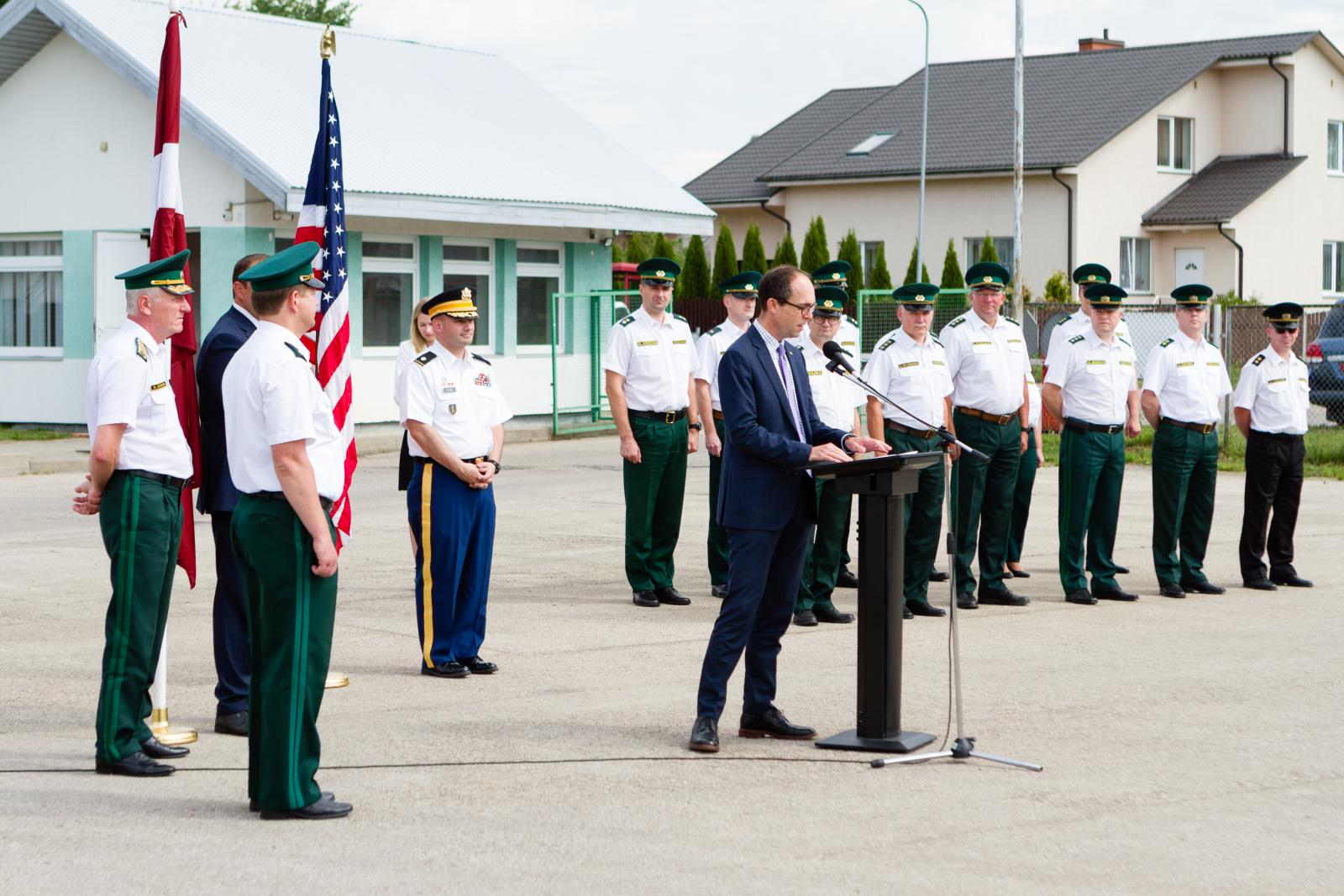 Piektdien, 29.jūnijā, iekšlietu ministrs Rihards Kozlovskis, ASV vēstnieces vietnieks Latvijā Pols Polītiss un Valsts robežsardzes priekšnieks ģenerālis Normunds Garbars piedalījās svinīgā ceremonijā, lai atzīmētu pirmo Valsts robežsardzei piegādāto ekipējumu, kas finansēts ar ASV militārā finansējuma programmas (FMF) atbalstu.