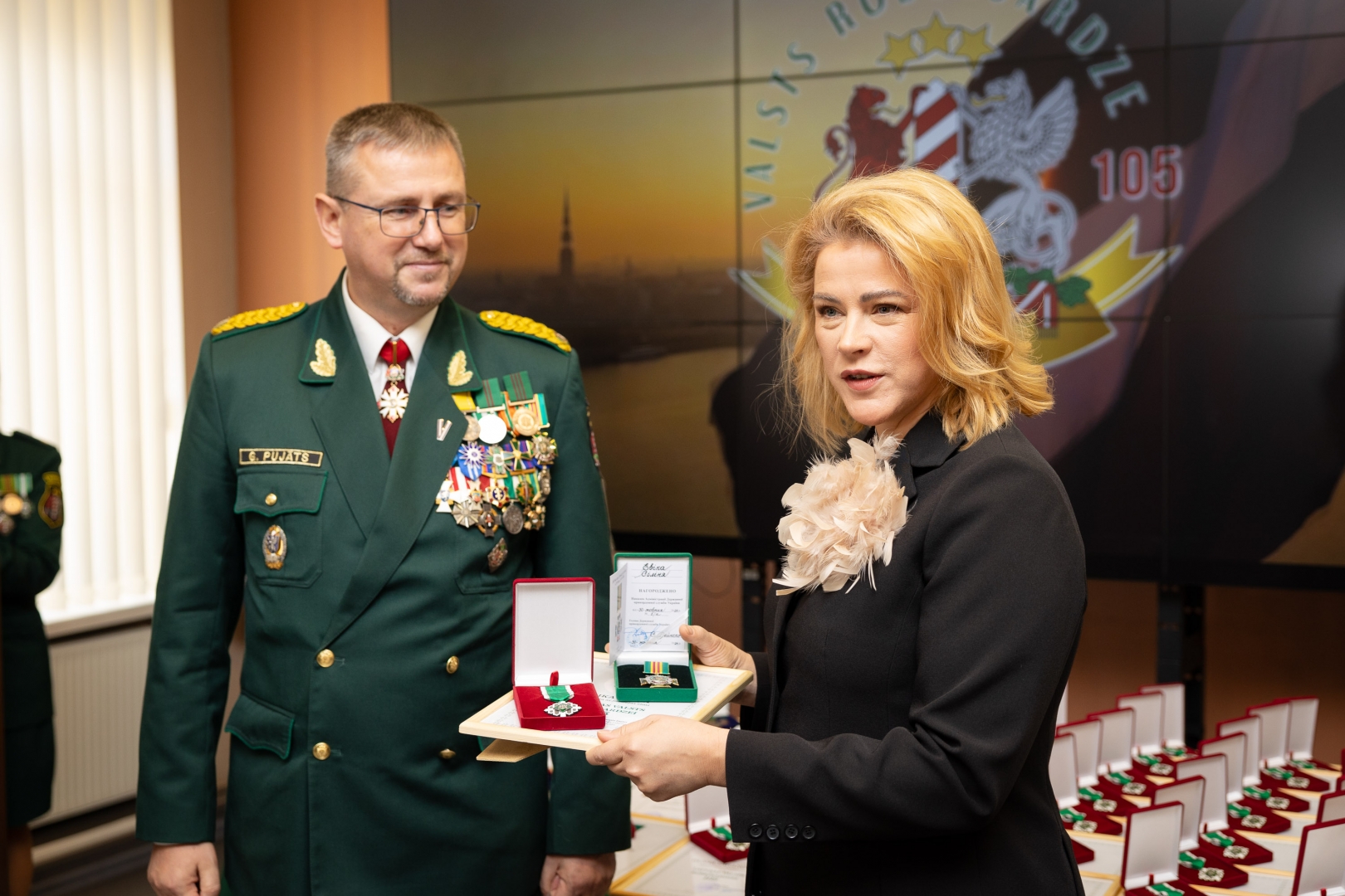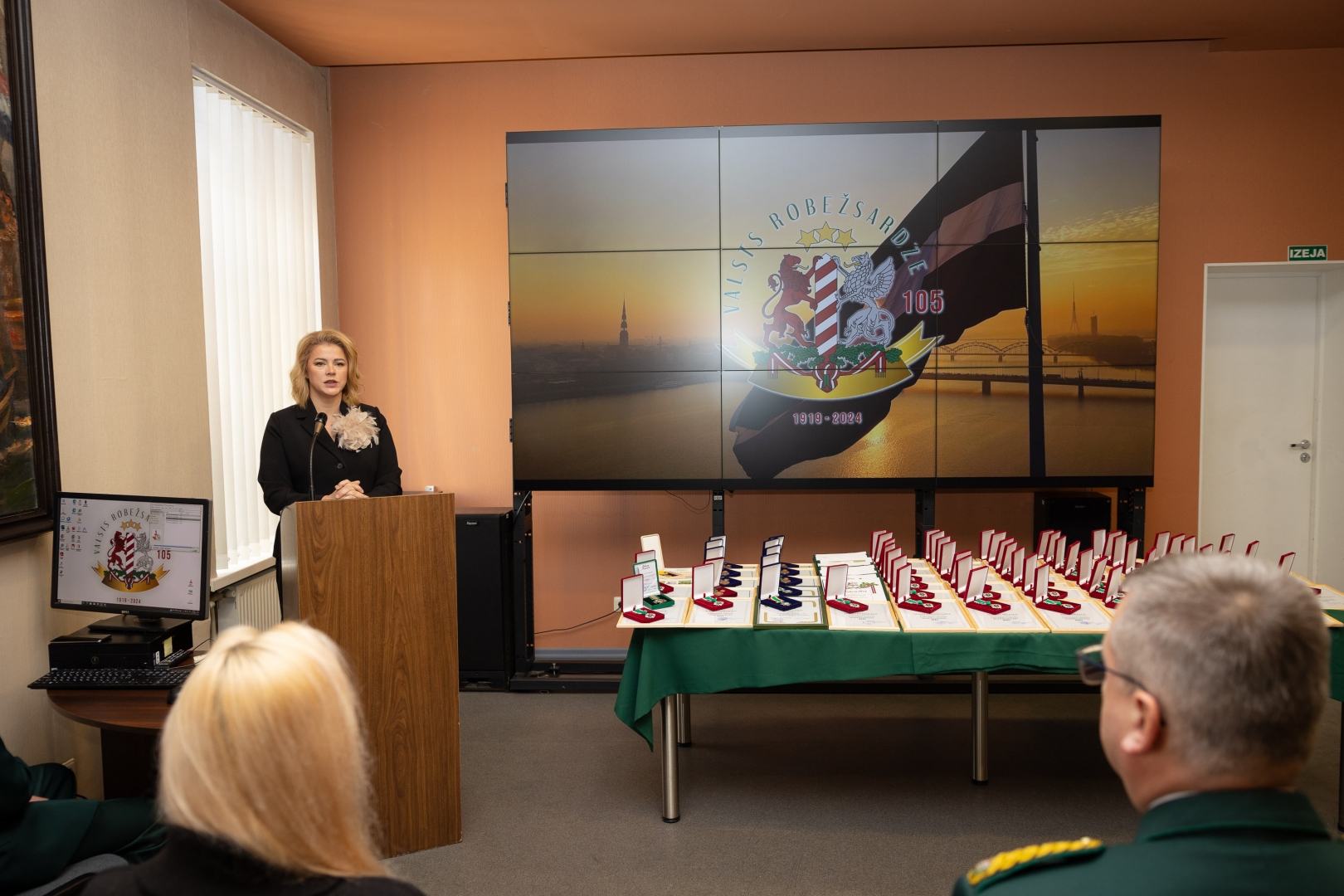 Piektdien, 15. novembrī, Valsts robežsardzes štābā par godu Valsts robežsardzes dibināšanas 105. gadadienai un Latvijas Republikas proklamēšanas gadadienai norisinājās svinīgā sanāksme, kurā piedalījās arī Ministru prezidente Evika Siliņa un finanšu ministrs Arvils Ašeradens.