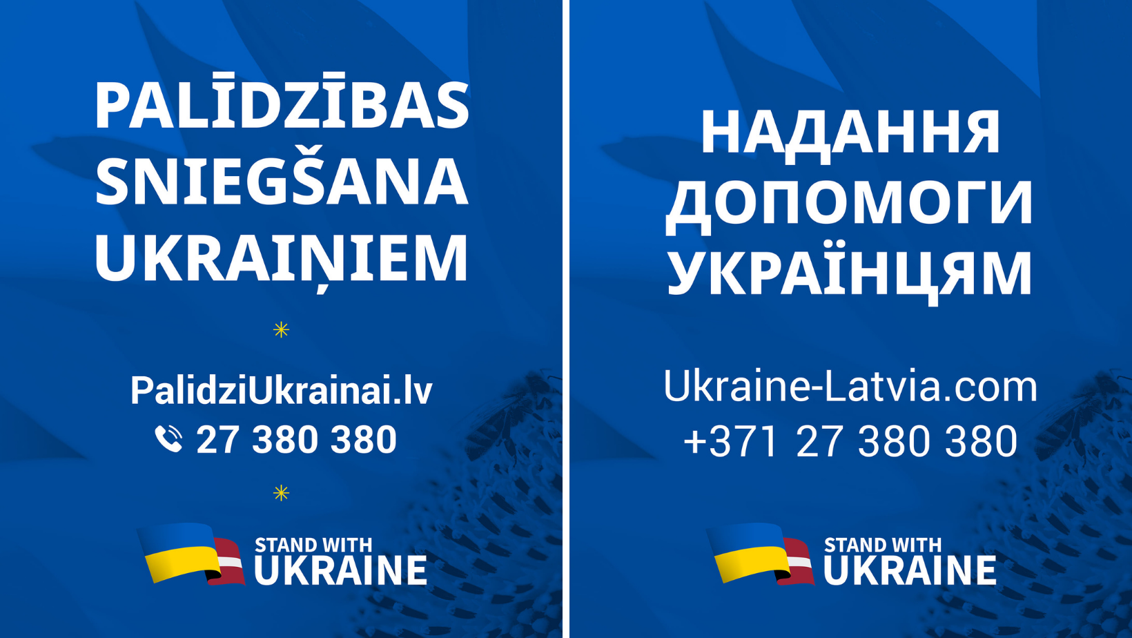 Lai sniegtu būtiskāko informāciju par atbalsta sniegšanas un saņemšanas iespējām Ukrainas civiliedzīvotājiem, izveidots vienotais informatīvais tālrunis – “Palīdzība ukraiņiem Latvijā” – +371 27380380.