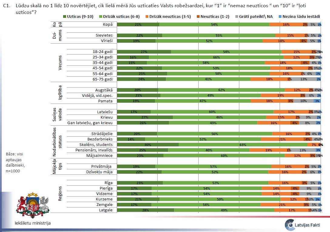 Tirgus izpētes uzņēmums “Latvijas fakti” no 2021. gada 9. aprīļa līdz 19. aprīlim veica sabiedriskās domas aptauju par drošības jautājumiem, kurā tika aptaujāts 1000 Latvijas iedzīvotāju vecumā no 18 gadiem.