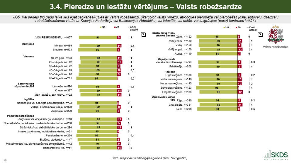 Pētījumu centrs SKDS no 2025. gada 28.marta līdz 7. aprīlim veica sabiedriskās domas aptauju par drošības jautājumiem, kurā tika aptaujāti1007 Latvijas iedzīvotāji vecumā no 18 gadiem visā Latvijas teritorijā.
