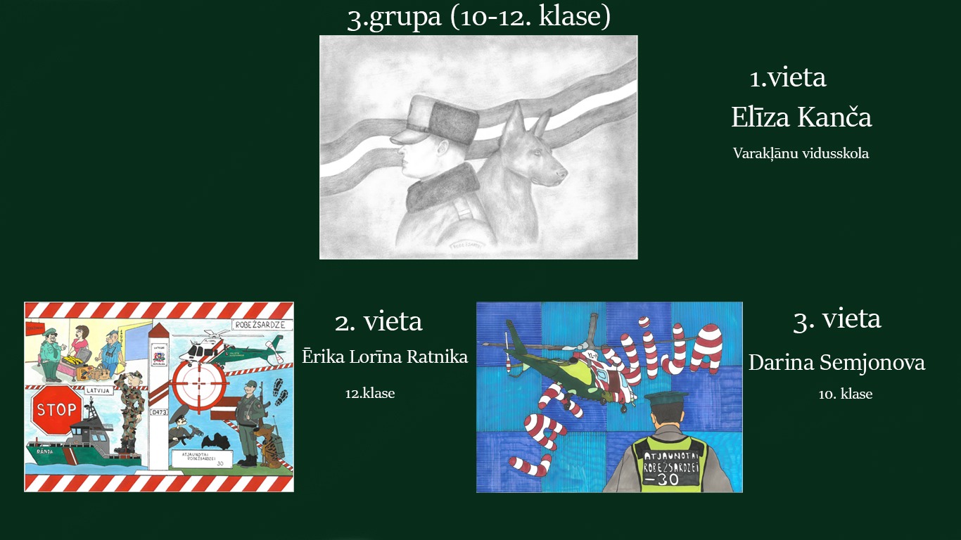 Valsts robežsardze izsaka pateicību ikvienam bērnu zīmējumu konkursa „Atjaunotai robežsardzei - 30" dalībniekam un sirsnīgi sveic konkursu uzvarētājus! Žūrijai nebija viegli izvēlēties labākos, jo iesūtīto darbu bija daudz. Līdz konkursa finālam tika 65 darbi, taču sīvā konkurencē godalgotās vietas ir ieguvuši: