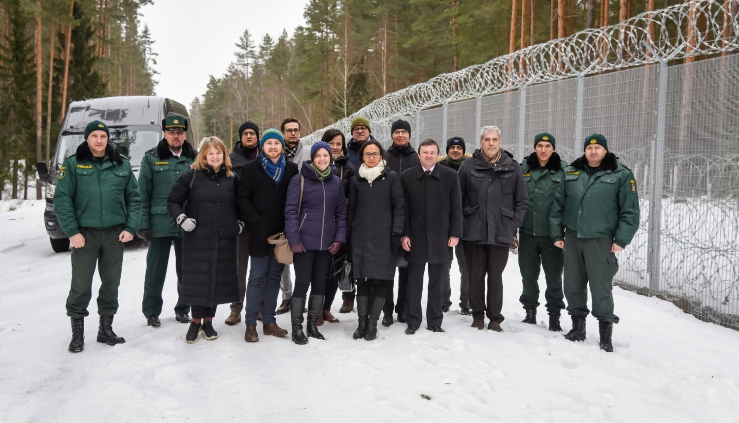 Tāpat Eiropas valstu vēstnieki apmeklēja atsevišķus valsts robežas posmus ar Baltkrieviju, kur iepazinās ar reālo situāciju dabā un apskatīja izbūvēto žogu uz Latvijas – Baltkrievijas valsts robežas.