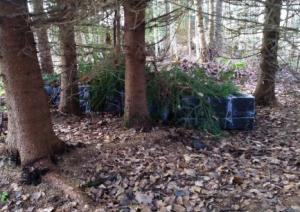 Augstāk minētās personas ieradās meža masīvā pie iepriekš izveidota slēpņa ar 12 melnā polietilēnā ietītiem taisnstūrveida iepakojumiem ar kontrabandas cigaretēm un uzsāka to sagatavošanu tālākai pārvietošanai. Aizturēšanas brīdī minētās personas metās bēgt, bet personas tika aizturētas.
