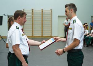 Par izrādīto centību mācību programmas apguvē un uzrādītām augstām sekmēm apbalvoti VRK Profesionālās izglītības dienesta Pirmās mācību rotas kadeti - Jaroslava Dobriņina, Justīne Aišpure un Edgars Varnovskis. VRK Profesionālās izglītības dienesta Pirmās mācību rotas kadetam Rolandam Āboliņam piešķirts „2017./2018.mācību gada labākā Valsts robežsardzes koledžas Pirmās, Otrās rotas kadeta" goda nosaukums, savukārt VRK Profesionālās izglītības dienesta Pirmās mācību rotas kadeti Eduards Mihailovs un Aivis Reinis apbalvoti sakarā ar nominēšanu „2017./2018.mācību gada labākā Valsts robežsardzes koledžas Pirmās, Otrās rotas kadeta" goda nosaukumam.
