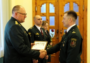 Sanāksmes noslēgumā tika pasniegta Iekšlietu ministrijas rīkojumā noteiktā speciālā dienesta pakāpe un Valsts robežsardzes Pateicības raksts “Gada labākais”.