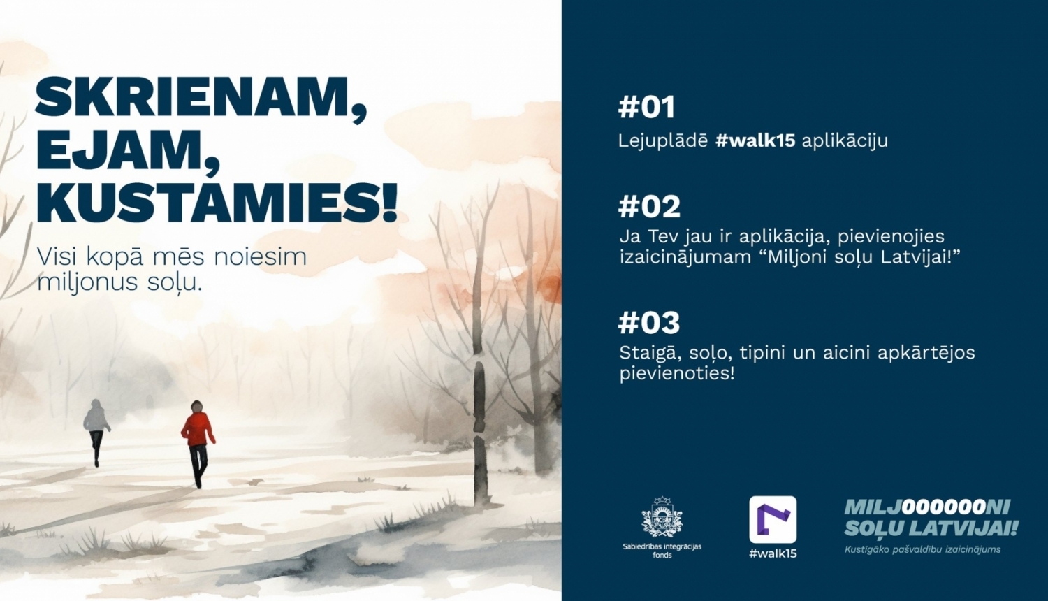 Plašāka informācija par izaicinājumu: https://www.walk15.app un https://www.sif.gov.lv